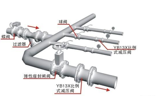 1.在比例式减压阀安装前,应将管道冲洗干净,并在阀前加装 Y 型过滤器。 由于管道内细小的杂物都将会导致减压阀关闭不严,从而引起渗漏而失效,导致阀后管网静压超高。过滤器应设置在总管上,并去掉堵头,引出装有阀门的排水管至污水池,以便及时排污。 2.比例式减压阀前、后必须设置闸阀或蝶阀以便检修时切断水源。 3.比例式减压阀宜垂直安装. 其安装说明书上说可垂直安装,也可水平安装。但当水平安装时,由于重力作用会造成下部的偏心磨损,因此宜垂直安装,并应按阀体上所示箭头方向安装。 4、在高层建筑消防给水中,为保证供水的不间断性,减压阀组宜设计为两组同径并联。其中一组工作,一组备用。且应与前后管径相同,以便检修、更换时不影响供水。与本产品相关论文:斯派莎克蒸汽减压阀在化纤管路应用