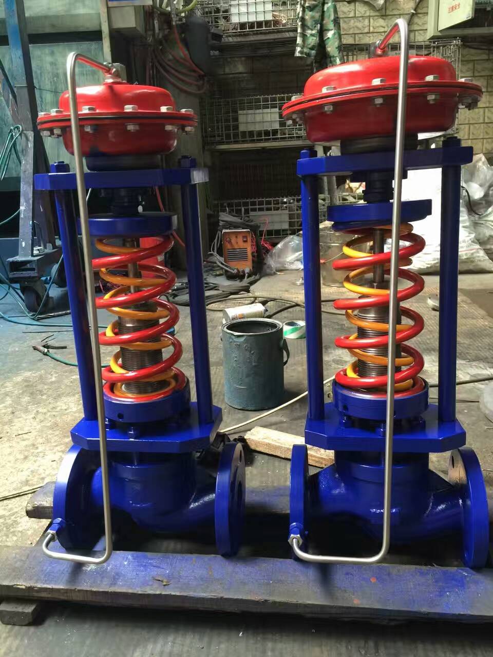1. 在蒸汽管道上面的自力式调节阀,安装时必须在执行器和管道之间加一个冷凝罐,不能让蒸汽进进执行器膜头; 2.自力式调节阀必须头朝下安装,冷凝罐要高于膜头,初次使用,一定要将冷凝罐和膜头中加满水;为保证调节阀正常运行,千万不能让接头漏水,不能让冷凝罐缺水,要定期检查,适时加水; 3.蒸汽压力假如较高,选用活塞式执行器,而不要用薄膜式执行器,由于膜片一般能承受的压力不超过0.4Mpa,固然能用,却要大大降低使用寿命。 4.对于自力式调节阀的维护人员来说,一定要多加留心,经常检查,防止出现意外情况。