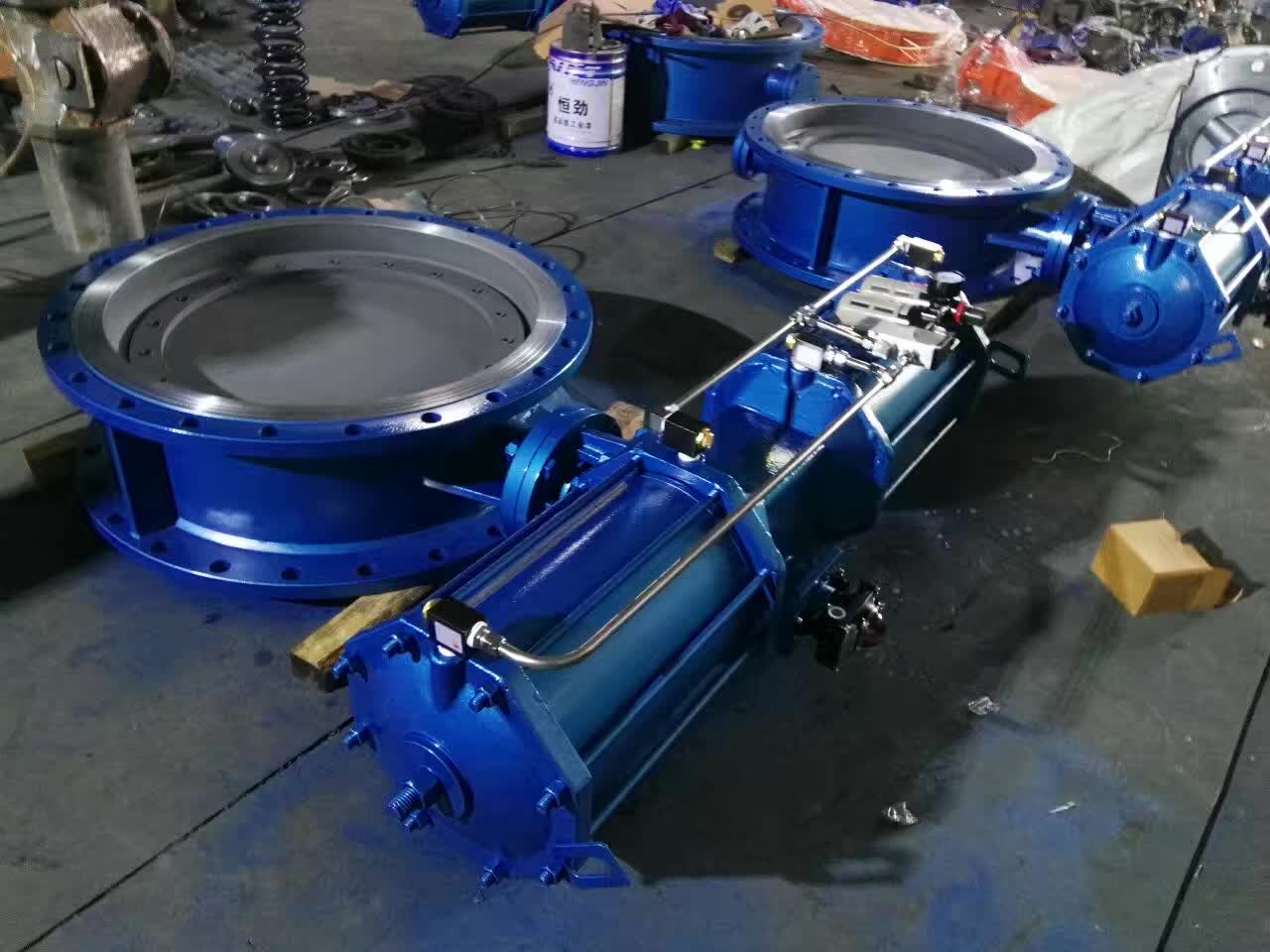 4 试验 为检验气动执行机构输出转矩、缓冲性能是否满足设计要求,使被控蝶阀的动作性能、密封性能、动作噪声、动作寿命等指标达到要求,将执行机构与DN400通径的蝶阀装配后进行了各项性能检测。气动通风蝶阀? 1、气动通风蝶阀采用中线式碟板与短结构钢板焊接的新型结构形式设计制造的,结构紧凑、重量轻、便于安装、流阻小、流通量大,避免高温膨胀的影响,操作轻便。 2、气动通风蝶阀内无连杆、螺栓等、工作可靠、使用寿命长。可以多工位安装,不受介质流向影响。 气动通风蝶阀的特点分析: 气动通风蝶阀采用中线式碟板与短结构钢板焊接的新型结构形式设计制造的,结构紧凑、重量轻、便于安装、流阻小、流通量大,避免高温膨胀的影响,操作轻便。体内无连杆、螺栓等、工作可靠、使用寿命长。可以多工位安装,不受介质流向影响。 1、设计新颖、合理、结构*,重量轻,启闭迅速。 2、操力矩小,操作方便,省力灵巧。 3、采用适应的材料以满足低、中、高不同介质温度其及腐蚀性介质等。 气动通风蝶阀的应用介绍: 气动通风蝶阀适用于五金、化工、建材、电站、玻璃等行业中的通风、环保工程的含尘冷风或热风气体管道中,作为气体介质调节流量或切断装置。适合过程种介质温度≤300℃公称压力为0.1Mpa的管道上,用以连通、启闭或调节介质量。 气动通风蝶阀的结构组成: 1、齿轮式双活塞,输出力矩大,体积小。 2、气缸选用铝金材料,重量轻、外形美观。 3、可在顶部、底部安装手动操作机构。 4、齿条式连接可调节开启角度、额定流量。 5、执行器可选带电讯号反馈指示及各类附件以实现自动化操作。 6、IS05211标准连接为产品的安装更换提供了方便。 7、两端调的节螺钉可使标准产品在0°和90°有±4°的可调范围。确保与阀门的同步精度。 4.1 动作性能试验 动作性能试验是检测气动执行机构的输出转矩和缓冲结构的作用是否达到设计要求。 动执行机构在气源压力分别为1.0MPa和2.0MPa条件下进行了整机动作性能试验。在试验过程中,明显可见蝶阀的蝶板动作速度在缓冲的各阶段变化,关闭和开启噪声远低于原蝶阀,采用噪声测量装置测量,在气动执行机构控制压力2.0MPa时噪声为75dB,低于系统对噪声要求。 4.2 阀座密封性能试验 阀座密封性能试验是检测在控制系统压力低(1.0MPa)时气动执行机构的转矩是否能将蝶阀的蝶板关闭到位,使蝶阀阀座满足在0.12MPa的气压下密封性要求。阀座密封性试验是在控制系统压力1.0MPa、蝶阀阀座试验压力为0.12MPa的条件下进行的,关闭后经10min的保压检测,阀座无任何泄漏。为检验气动执行机构的设计余量,降低控制系统气源压力至0.8MPa,首行几次动作试验,开关均满足要求,检测阀座密封性无任何泄漏。 4.3 动作寿命试验 动作寿命试验是检测气动执行机构的缓冲结构是否减小了对阀座的冲击,使蝶阀的动作寿命明显提高,同时也检测气动执行机构的动作寿命是否满足要求。蝶阀动作寿命试验是在气动执行机构气源压力为2.0MPa的条件下进行的,共动作2200次,寿命试验完成后对整机性能进行了检验,均满足设计要求。 4.4 拆检 动作寿命试验结束后对气动执行机构进行了拆检,缸筒内壁、活塞表面、齿条齿轮啮合面均无明显磨损和擦伤。