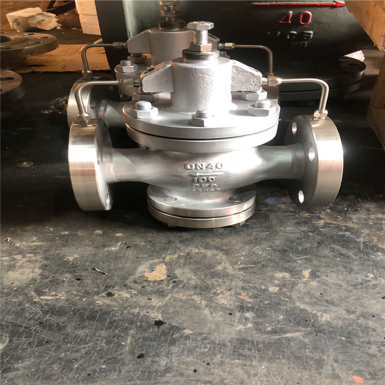 减压阀出厂时,调节弹簧处于未压缩状态,此时主阀瓣和付阀瓣处于关闭状态,使用时按顺时针方向转动调节螺钉,压缩调节弹簧,使膜片下移顶开付阀瓣,介质由a孔进入活塞上方,活塞在介质压力的作用下,向下移动推动主阀瓣离开主阀座,使介质流向阀后,同时由c孔进入膜片下方,当阀后压力超过调定压力时,推动膜片上移压缩调节弹簧.付阀瓣随之向关闭方向移动,使流入活塞上方的介质减小,压力也随之下降,此时主阀瓣在主阀瓣弹簧力的推动下上移,使主阀瓣与主阀座的间隙减小,介质流量随之减少,使阀后压力随之下降到新的平衡,反之当阀后压力低于调定压力时,主阀瓣和主阀座间隙增大,介质流量随之增加,使阀后压力随之增高达到新的平衡.