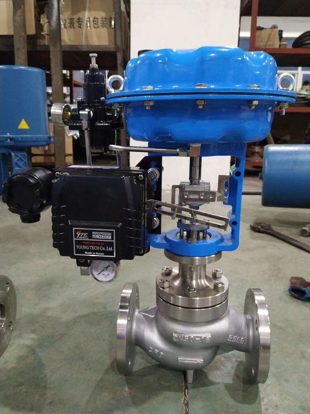 (三)气动调节阀定位器常见故障处理办法YTC-2500智能电气阀门定位器 电气阀门定位器是一种从控制器或控制系统中受4~20mA直流电信号,并向气动执行机构输送空气信号来控制阀门位置的装置。其与气动调节阀配套使用,构成闭环控制回路。把控制系统给出的直流电流信号转换成驱动调节阀的气信号,控制调节阀的动作。同时根据调节阀的开度进行反馈,使阀门位置能够按系统输出的控制信号进行正确定位。该电气定位器可用于单作用型(弹簧复位型)和双作用型气动执行机构。由于YT-1000系列具有防爆结构,故能使用于爆炸危险场所。 二、产品特点 1、具有高防振性(在5-200Hz范围内无共振现象)。 2、磁电组件部分采用新型动圈结构,可靠、稳定、线性好。 3、除防爆接线盒外,在危险性区域现场可打开壳盖进行调整及检修。 4、通过防爆等级(Exia II BT6,Exdm II BT6)认证。通过IP66等级认证。 5、配有与各类型执行机构相配的安装板及附件,故安装容易、调整方便。 6、调试方便简单,正向和反向,单作用和双作用之间可方便转换,不用更换零件就能实现1/2范围内的分程。 7、结构紧凑,精密可靠 本产品零部件精密压铸,外形及内部结构制作工艺精致,各机构经优化组合设计,整机结构紧凑,采用不锈钢紧固件和的喷朔工艺处理.生产制造标志 久性等,具备了良好的防腐性能。 8、本定位器可根据要求.附采用活动可调节阻尼机构,使具有输出流量可调的特点。 9、导气管的连接设计为多也形式,便于导气管任意方向连接。 10、对于小型执行机构通过使用排气孔易于排除振动的影响。 综合以上等技术性能特点,故YT-1000系列定位器可满足不同的类型单.双作用,正.反作用的各类气动执行器要求。具有国际水平的较为可靠可行的技术性能和特色。