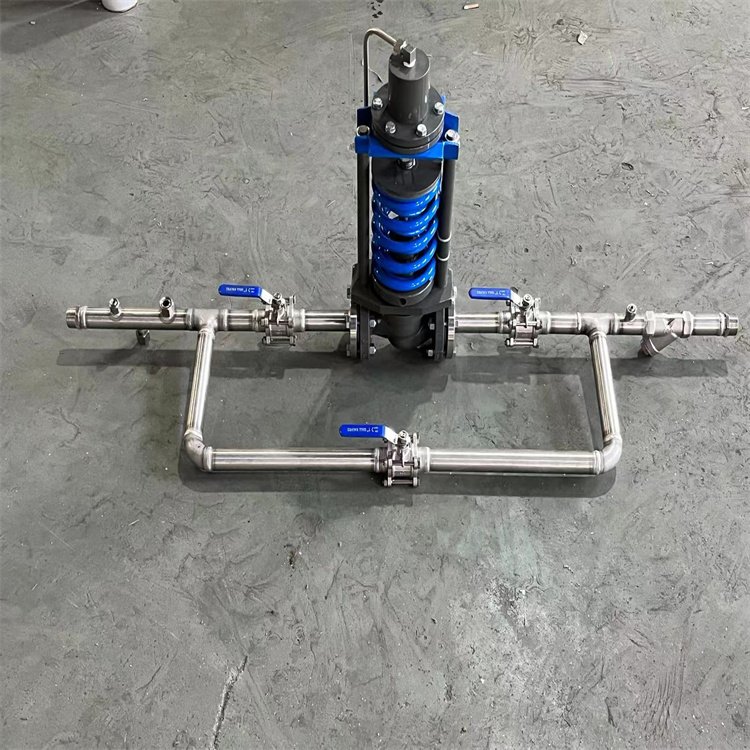 ZZYP自力式压力调节阀使用方法 自力式调节阀般由执行机构和阀门组成,是工业自动化过程控制领域中通过接受调节控制单元输出的控制信号,借助动力操作去改变介质流量、压力和液位等工艺参数的最终控制元件。调节阀根据调节部位信号,自动控制阀门的开度,从而达到介质流量、压力和液位的调节。本文依据GBT4213-2008要求,设计了一种测量调节阀各类误差的测试装置,以满足出厂检验的需要。 管道配置:1、ZZY型自力式压力调节阀2、截止阀3、储气罐4、安全阀 方案一采用自力式压力调节阀,因简单方便,维护量小,特别是在现场能适用在无电无气的场合,因此在蒸汽减压的系统中得到了广泛的应用,见以下特点: