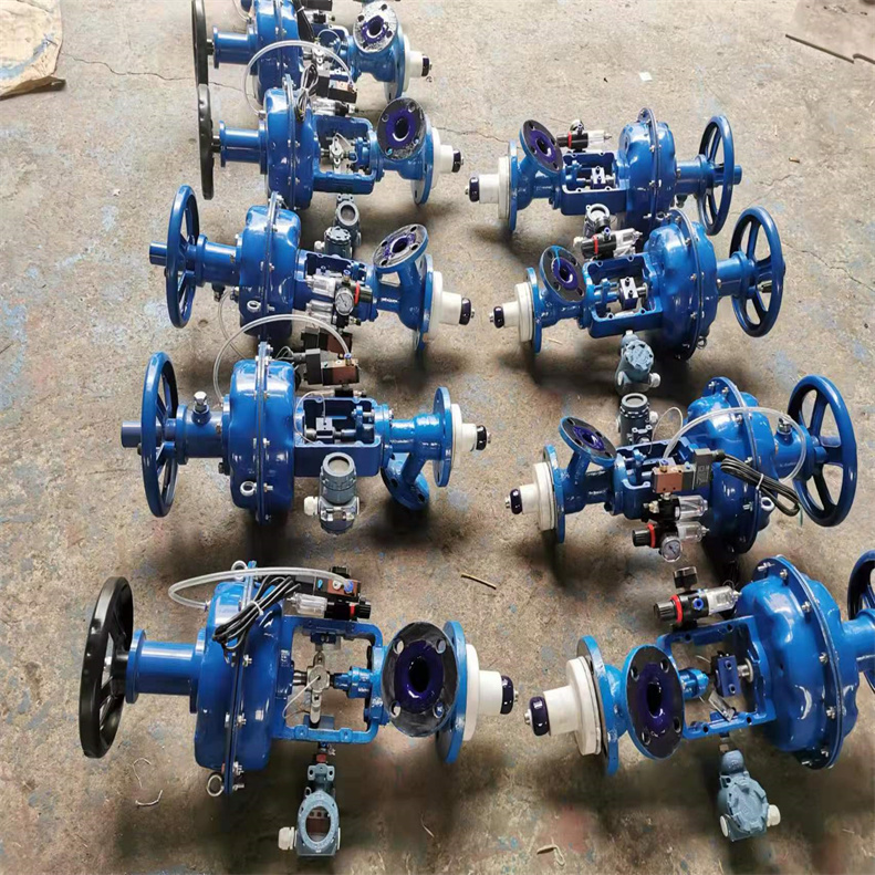 气动搪瓷放料阀具有耐高温、耐腐蚀、耐压力之功效,广泛应用于化工自动化控制领域。气动搪玻璃放料阀是我厂最新开发的产品。该阀门自动化程度高,可远距离操作,安全可靠,抗腐能力强,且具有手控和气控双功能 手轮式搪玻璃阀门由阀体、支架、丝杆、阀芯、孔板、手轮等组成。 该阀门能耐各种浓度的酸、碱、盐溶液及各种有机物料的输送。具有体积小、重量轻、操作维修方便的特点。气动薄膜搪式玻璃放料阀的工作原理是气动于膜片上产生推力,使推杆位移变化。该气动阀门的执行机构采用多弹簧执行机构,其结构紧凑,输出力大。气动气缸式搪玻璃放料阀具有结构简单,操作方便,使用可靠,快速关闭的特点工作原理是气缸执行机构接受于活塞上产生推力,使推杆位移变化。