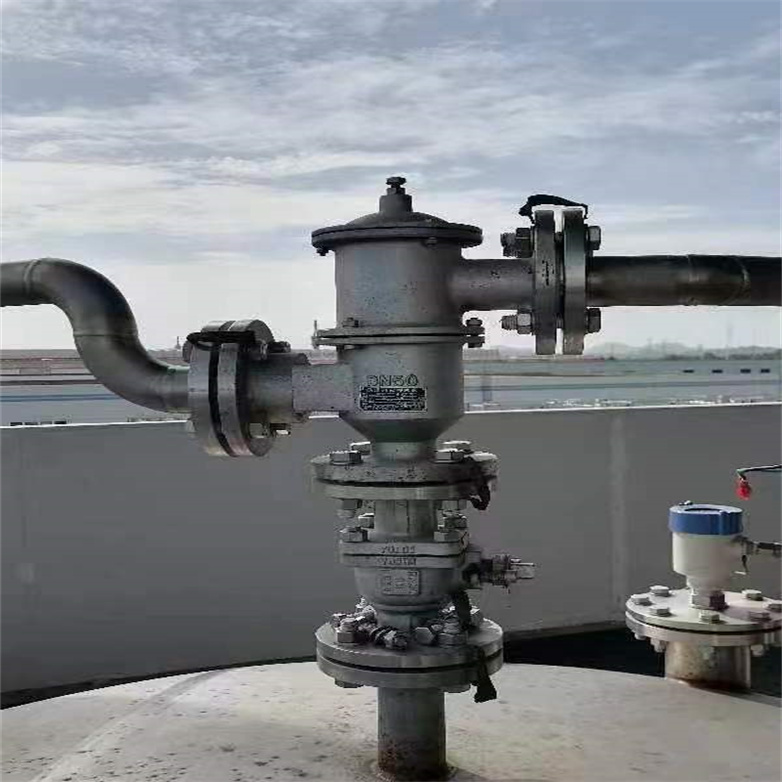 五、常低压储罐双接管呼吸阀技术规范的选用 在确定了呼吸量Q(以m3/h为单位)后,结合气体流速u在3~5m/s的考虑范围,可以利用公式d=18.81V0.5u-0.5来计算呼吸阀的进出口管径。经过向上圆整后,即可选择合适的阀门尺寸。当呼吸阀与阻火器联合使用时,还需考虑阻火器的压降影响。 市场上常见的呼吸阀规格,其连接法兰公称通径DN包括:50mm、80mm、100mm、150mm、200mm、250mm、300mm以及350mm。同时,还需根据呼吸阀的工作温度进行选择。呼吸阀可分为全天候型与普通型,前者适用于-30℃~60℃的温度范围,型式代号为Q,后者则适用于0℃~60℃,型式代号为P。综合考虑呼吸阀的尺寸与工作温度,最终选出符合设计工况的呼吸阀。 是维护储罐气压平衡,减少介质挥发的安全节能产品。带双接管阻火呼吸阀是原油、汽油、煤油、轻柴油、芳烃等固定顶式储罐上的主要安全设备,能起到防止蒸发损耗与保护储罐在受超压或真空时免遭破坏的作用。 常低压储罐双接管呼吸阀技术规范产品规范 根据国家标准《石油化工企业设计防火规范》(GB50160-92)之规定:“储存甲、乙类液体的固定式顶罐,应设阻火器和呼吸阀”。呼吸阀的品种很多,各有其不同的性能和特性,在选择时就要按照其特性所满足的条件,是否能达到最佳的运行效果,再多方面考虑一些客观的因素即可。带双接管阻火呼吸阀就是其中一个受市场欢迎的产品,带双接管阻火呼吸阀在系统中起安全保护作用。在实际应用时,应根据实际需要选择其特性类型,并根据最大排气量选择其通径为最佳方案。带双接管(阻火)呼吸阀是新型改进型呼吸阀,集合呼吸阀与储罐阻火器的双重作用。 常低压储罐双接管呼吸阀技术规范产品作用 HXF2带双接管阻火呼吸阀是安装在固定顶罐上的通风及阻火装置,能起到能起到减少油品蒸发损耗,控制储罐压力平衡和控制火焰的作用。呼吸阀内设有静电保护装置,使得该阀时刻与罐体保持同等电位。带双接管(阻火)呼吸阀也适用于可回收气体储罐,如有氮气封顶储罐,它可直接从氮气罐内吸入氮气,也可接储罐内的废氮回收,真正做到了高效、节能、环保。带双接管(阻火)呼吸阀还具备对储罐内外压力进行自动调节的作用,该阀可代替氮封装置。 常低压储罐双接管呼吸阀技术规范产品特点 HXF2带双接管阻火呼吸阀阀盘采用四氟材料,耐低温,防冻性能好;阻火盘采用不锈钢材质,阻火性能优良。壳体选用不锈钢、铸钢和铝合金,结构紧凑,阻火性能强、通气量大、泄漏量小、耐腐蚀、耐低温、防霜冻、易检修,安全方便等特点。