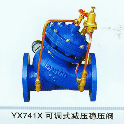 减压阀的构造类型很多,以往常见的有薄膜式、内弹簧活塞式等。减压阀的基本作用原理是靠阀内流道对水流的局部阻力降低水压。 YX741X可调式减压稳压阀利用针型调节阀、导阀进行水压自力控制,不需要附加其它装置和能源,维护保养简便,受进口压力和流量影响小,压力控制准确度高,减压稳压可靠。可调式减压稳压阀是安装于高层建筑给排水系统管道上,将进口压力减至某一需要的出口压力的特种阀门。该阀门依靠本身能量使出口压力保持稳定在设定值,即出口压力不因进口压力及流量的变化而变化,并且阀门控制系统的进口处装有一个自清洁滤网。利用流体特性,使比重较大、直径较大的悬浮颗粒不会进入控制系统,确保系统循环畅通无阻。使阀门能安全可靠地运行。系统动作灵敏。使用寿命长。与本产品相关论文PLC控制智能电动调节阀