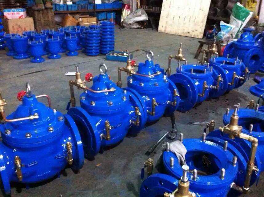 给水减压阀布置安装单套减压阀组应由下列组件组成(沿水流方向): 1 进口端压力表; 2 前检修阀; 3 管道过滤器(减压阀自带过滤网的可不设); 4 减压阀; 5 可曲挠橡胶接头(螺纹连接时采用活接头。减压阀自带伸缩法兰时可不设); 6 后检修阀(用于入户支管减压时可不设); 7 出口端压力表。  减压阀组前、后管段上的压力表分别显示进、出口压力,尤其出口压力表,以观察减压阀的减压效果,判断故障。对于减压阀本身自带压力表的,可不另设;前、后检修阀用于减压阀组件维修时切断两端水源之用;管道过滤器设置在减压阀之前,用于拦截水流中的杂质,减少减压阀的故障,提高运行可靠性;设置可曲挠橡胶软接头或伸缩接,是为了便于减压阀组的拆卸和装配;由于阀后压力比阀前压力低,橡胶软接头一般设置在减压阀之后。减压阀是通过调节,将进口压力减至某一需要的出口压力,并依靠介质本身的能量,使出口压力自动保持稳定的阀门。从流体力学的观点看,减压阀是一个局部阻力可以变化的节流元件,即通过改变节流面积,使流速及流体的动能改变,造成不同的压力损失,从而达到减压的目的。然后依靠控制与调节系统的调节,使阀后压力的波动与弹簧力相平衡,使阀后压力在一定的误差范围内保持恒定。 Y42X/F系列弹簧活塞式减压阀,是弹簧薄膜弹簧减压阀的换代产品,与薄膜式相比有以下优点: 1、使用寿命长,不存在薄膜损坏的问题。 2、耐高压,出口压力高,薄膜片就不行。