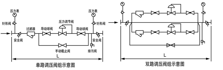 自力式减压阀组设计、安装 自力式减压阀组设计 自力式减压阀组安装 自力式减压阀组 之前介绍组合式减压阀在国华惠州热电应用,现在介绍自力式减压阀组设计、安装安装方式:自力式减压阀广泛用于石油、化工、电力、冶金、食品、轻纺、机械制造与民用建筑楼群等各种工业设备中,能应用于气体、液体、蒸汽介质的减压稳压(阀后调节)或泄压稳压(阀前调节),但由于它利用介质自身的压力去操作执行机构,在执行机构内充满介质,故安装方式应与此相配合。在安装时取压点应设在离调压阀适当的位置,压开型调压阀应大于2倍管道直径,压闭型调压阀应大于6倍管道直径。在安装冷凝器时应注意冷凝器的位置,使其高于膜头而低于工艺管道,以保证冷凝器内充满冷凝液。自力式减压阀无需外加能源,利用被调介质自身能量为动力源引入执行机构控制阀芯位置,改变两端的压差和流量,使阀前(或阀后)压力稳定。具有动作灵敏,密封性好,压力设定点波动力小等优点,广泛应用于气体、液体及蒸汽介质减压稳压或泄压稳压的自动控制。