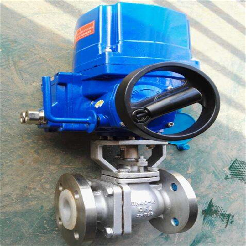 Q941F46电动衬氟法兰式球阀技术规范 电动衬氟球阀由电动执行机构和衬氟球阀组成,由于该阀内腔及球体均采用高压注塑工艺,衬有耐腐蚀、耐老化的聚四氟乙丙烯(简称F46),故具有可靠的耐腐蚀性和密封性。执行机构能提供足够的转距,保证阀的可靠开、闭,并带有自动复位的离合器,失电时可自动复位。内置阀位反馈装置可实现阀位信号的传递和远程控制。 是由电动执行机构和O型衬氟球阀组成。阀体内腔及球芯均采用高压注塑工艺衬有耐腐蚀、耐老化的聚全氟乙炳烯,故具有可靠的耐腐蚀性和密封性。电动衬氟球阀主要用于对生产过程中酸碱等强腐蚀介质的调节或切断。电动执行机构内置伺服系统,无须另配伺服放大器,输入4-20mA信号及220VAC/380V电源即可控制运转。电动衬氟球阀、衬四氟电动球阀具有连线简单,结构紧凑、尺寸小、重量轻、阻力小、动作稳定可靠等优点。