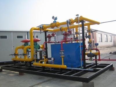燃气调压站工艺参数 必一运动体育 之前介绍在线调节减压阀,现在介绍燃气调压站工艺参数调压站工艺设计应符合下列要求。 ①低压管网不成环的区域调压站和连续生产使用的用户调压装置宜设置备用调压器,其他情况下调压器可不设备用调压装置。调压器的天然气进出口管道之间应设旁通管,用户调压箱可不设旁通管。 ②高压天然气调压站室外进、出口管道上必须设置阀门,中压调压站室外进出口管道上宜设置阀门,当通向调压站支管阀门距调压站小于lOOm时,室外支管阀门与调压站进口阀门可合为一个。 ③在调压器天然气入口处宜安装过滤及清除杂质装置,在出口处宜设置防止天然气出口压力过高的安全保护装置,居民用调压箱中的调压器安全保护装置宜选用人工复位型。 ④各种安全放散装置的放散压力应为工作压力的1.3倍,放散管管口应高出调压站屋檐1.5m以上。落地式调压箱的安全放散管管口距地面的高度不应小于4m,设置在建筑物墙上的调压箱的安全放散管管口应高出建筑物屋檐lm以上。 ⑤调压站内调压器及过滤器前后均应设置指示式压力表。调压器前宜设置自动记录式仪表,调压器后应设置自动记录式压力仪表。 ⑥调压站内调压器水平安装高度应便于维护检修,两台以上调压器平行布置时,相邻调压器外缘净距应大于lm,调压器与墙面之间的净距和室内主要通道的宽度均应大于0.8m。 ⑦调压站建筑物耐火等级应符合现行的国家标准《建筑设计防火规范》(GBJ 16)的不应低于“二级”的设计规定。消防设施和器材的配备也应符合《建筑设计防火规范》(GBJ 16)的规定。调压器与毗邻的房间之间应用厚度大于24cm的实体隔墙隔开,隔墙内不得设有烟道和通风设备。调压器室内地坪应采用不会产生火花的材料铺设。必一运动体育主营阀门有:减压阀(气体减压阀,可调式减压阀,水减压阀调压器应有泄压措施,门窗应向外开启,窗应设防护栏和防护网,当门采用木质结构时则应包敷铁皮或以其他防火材料涂覆。在燃气调压器上通常标有一些符号,这让一些普通消费者不明就里,根本就不知道这些符号代表什么意思啊!燃气调压站工艺参数其实这些符号就是燃气调压器的专业术语,所以为了让大家能更容易的了解这些符号,小编特意总结了一些,让大家分分钟都能看懂。 1.进口压力:P1表示,定义为:调压器进口端燃气压力。 2.出口压力:P2表示,定义为:调压器出口端燃气压力。 3.小压差:△P表示,定义为:进口压力和出口压力的小差值。 4.工作温度:T1表示,单位为℃,定义为:进口端的燃气温度。 5.高进口工作压力:P1 max 表示,定义为:常温下为公称压力,各温度下为燃气调压器材料允许的大工作压力。 6.低进口工作压力:P1 min 表示,定义为:一定流量下,为保持出口压力达到给定值所需的低进口压力。 7.大出口压力:P2 max 表示,定义为:在规定的精度范围内,所允许的大出口压力。 8.喘动:定义为:是调压器出口压力发生上下交替大幅度偏离额定压力的现象,发生这一现象时常常伴有颤动喘息等非正常状态,故称喘动。 9.稳压精度:δP2是指调压器流量一定时,进口压力P1在其额定压力范围内变化,出口压力P2与其额定压力的偏差和额定出口压力的比值。 10.小出口压力:P2 min 表示,定义为:在规定的精度范围内,所允许的小出口压力。 11.关闭压力:Pb表示。定义为:当调压器流量渐渐降低到零后,出口压力终稳定的压力值。 12.额定流量:Qn 表示,单位为 m3/h, 定义为:在规定的进口压力范围内,当进口压力为允许低值,出口压力为稳压精度范围内的下限值时的流量。 13.大流量:Qmax(Gmax)表示,单位m3/h,定义为:在给定的出口压力下,当其偏差在规定范围内时所能达到的流量上限。 14.流量特性偏差值(流量特性曲线):△P2Q(△P2G)表示。定义为:稳定流动状态下,当进口压力一定时,燃气调压器流量变化所引起的出口压力变化值。 15.压力特性偏差值(压力特性曲线):P2G表示。定义为:出口流量一定,进口压力改变时,出口压力的变化值。 设于空旷地带的调压站及采用高架遥测天线的调压站应单独设置避雷装置,其接地电阻值应小于10 Q。当调压站内外天然气管道为绝缘连接时,调压器及其附属设备必须接地,接地电阻应小于100 Q。 ③地下式调压站的建筑物室内净高不应低于2m,宜采用混凝土整体浇筑,需采取防水和防寒措施。调压器室顶盖应采用混凝土整体浇筑的结构形式。